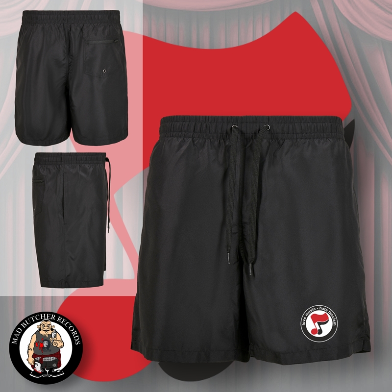 LOVE MUSIC HATE FASCISM NOTES SWIM SHORTS