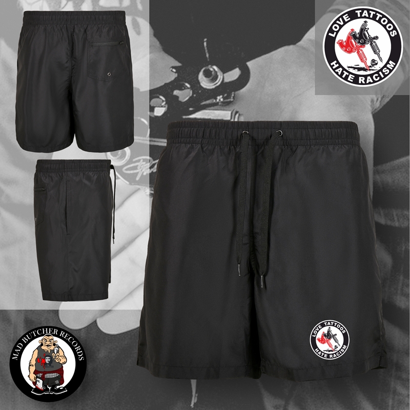 LOVE TATTOOS HATE RACISM SWIM SHORTS